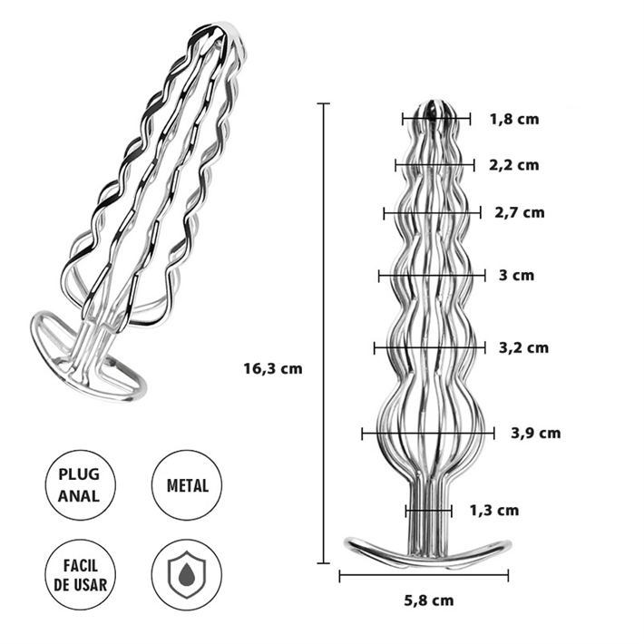 Este plug anal de acero inoxidable con 6 bolas huecas fue diseñado para lxs que buscan ir más allá. Su diseño progresivo, que va de 1.8 cm a 3.9 cm de diámetro, ofrece una inserción intensa, gradual y absolutamente adictiva.