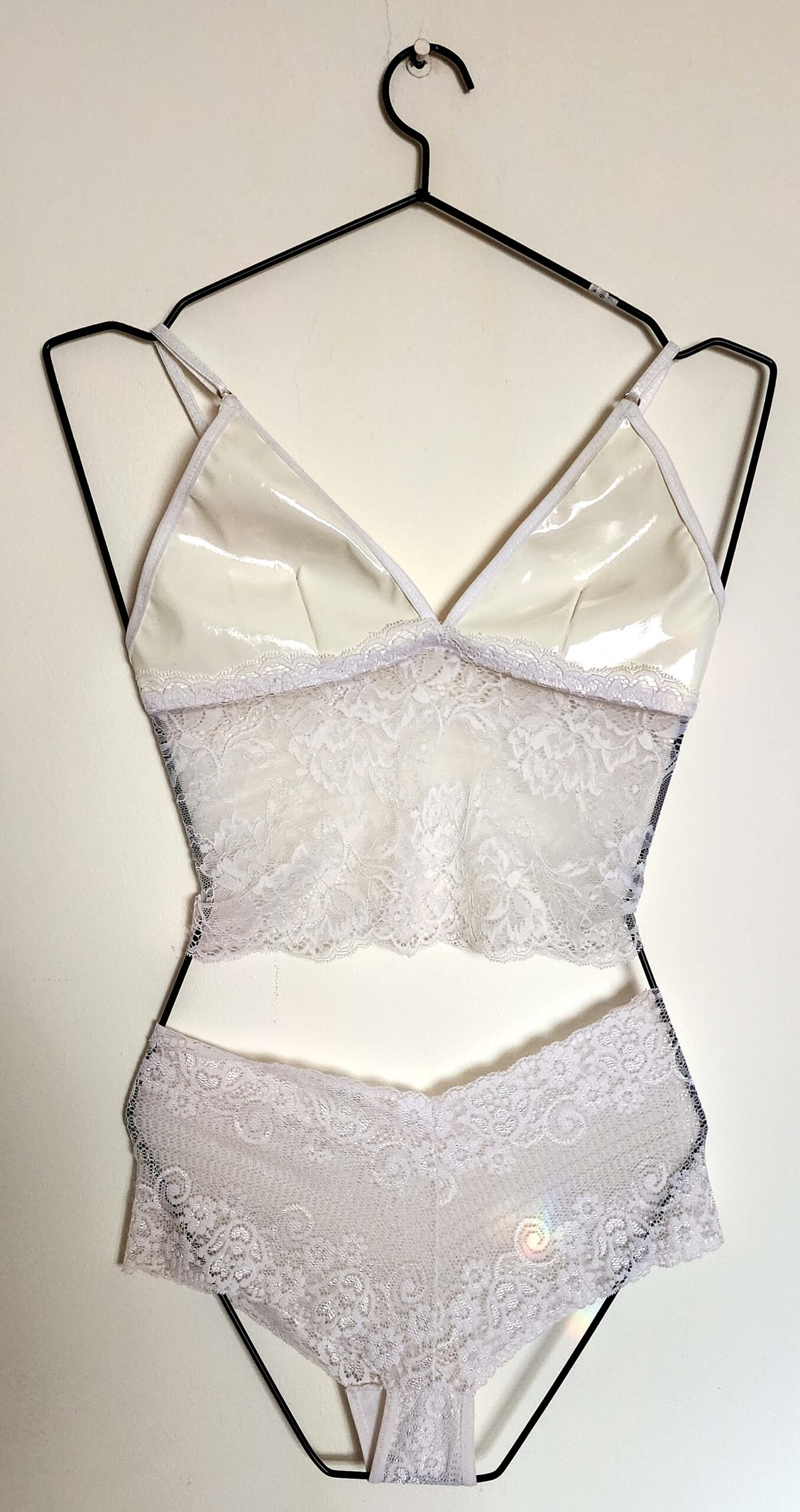 🤍 Set Bralette de Vinilo & Encaje + Culotte – Color Blanco 🤍