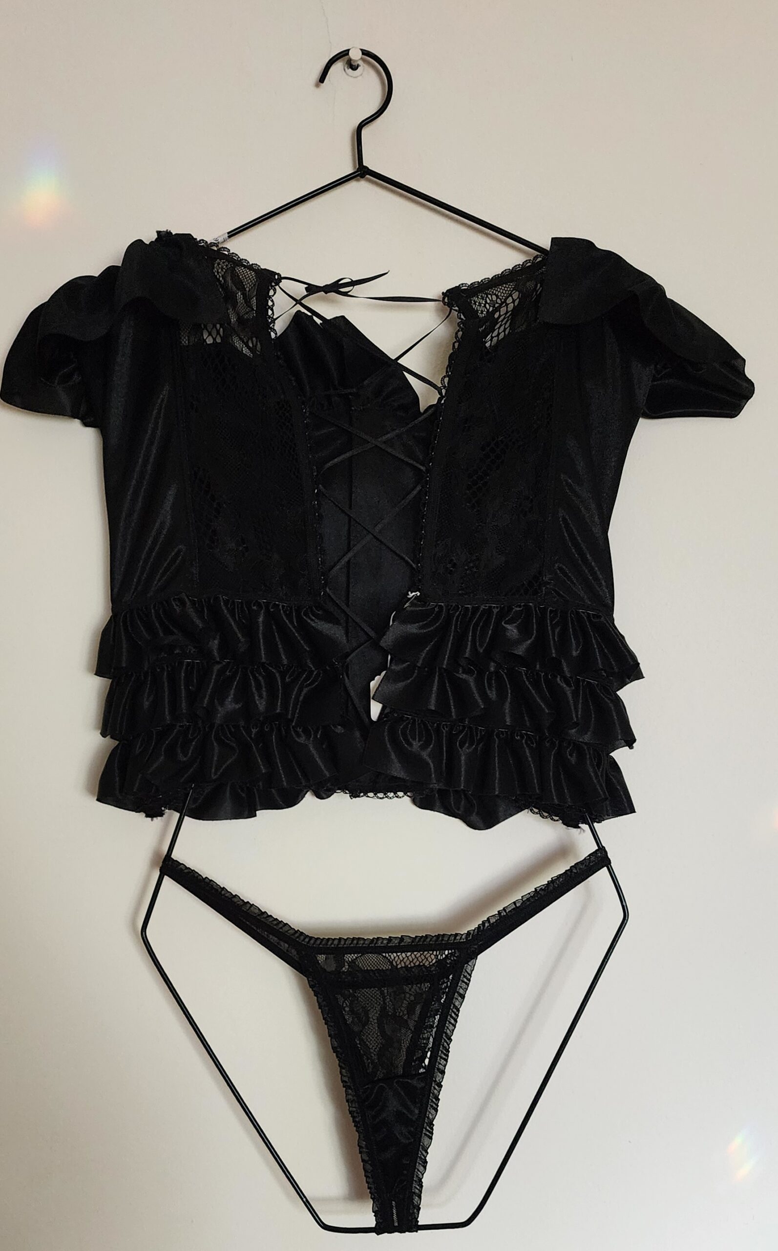 Nuestro corset de raso y encaje está hecho para desatar fantasías. Su textura suave y detalles en encaje lo convierten en una prenda irresistible.