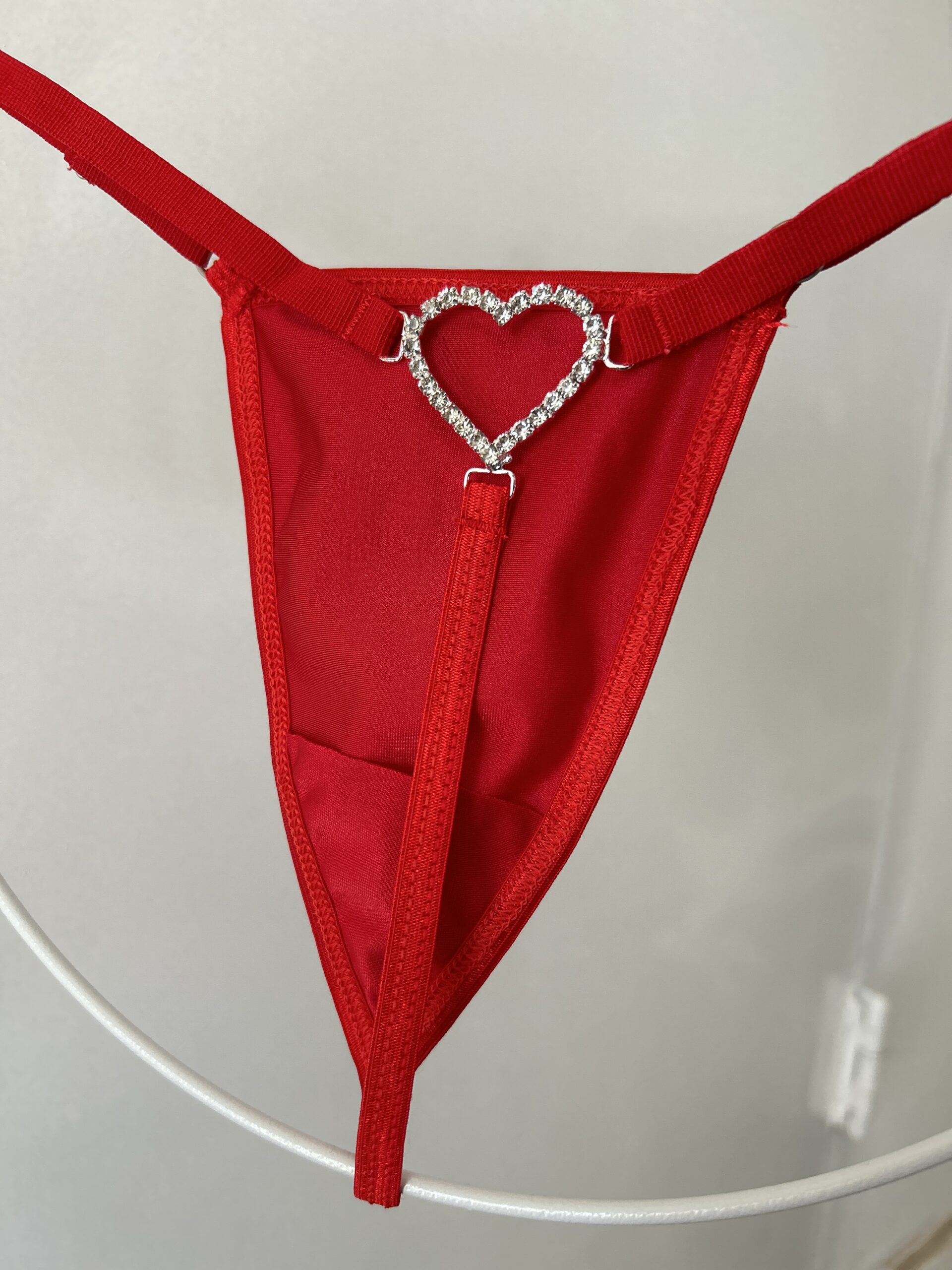 Una pieza de lencería que combina elegancia y sensualidad. Esta tanga hilo tiene un hermoso corazón de strass grande que resalta tu figura de manera sofisticada y atrevida.